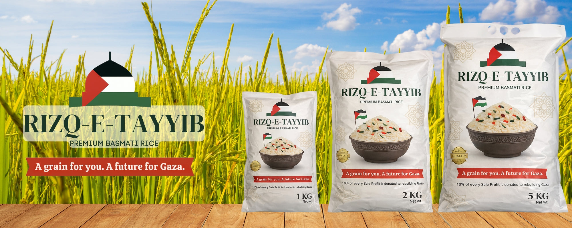 At Rizq-e-Tayyib, our mission is to deliver the finest premium Basmati rice, nurtured in the fertile fields of Punjab, Pakistan, with care, purity, and authenticity. We strive to bring exceptional quality and natural aroma to every table, elevating the daily meal into a celebration of taste and tradition. Beyond providing premium nutrition, we are committed to making a meaningful impact—donating 10% of every sale to help rebuild Gaza, turning every grain you enjoy into hope and opportunity for those in need. With Rizq-e-Tayyib, every meal nourishes both the body and the soul, combining excellence with purpose.